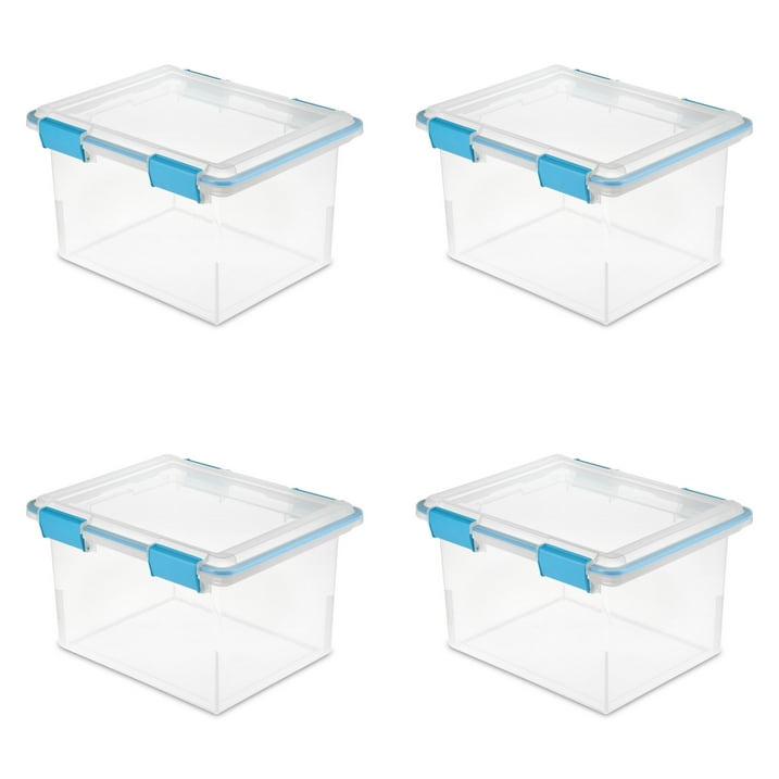 Home > 4 Pack 32 Quart Clear Plastic Storage Container with Gasket Lid, Blue