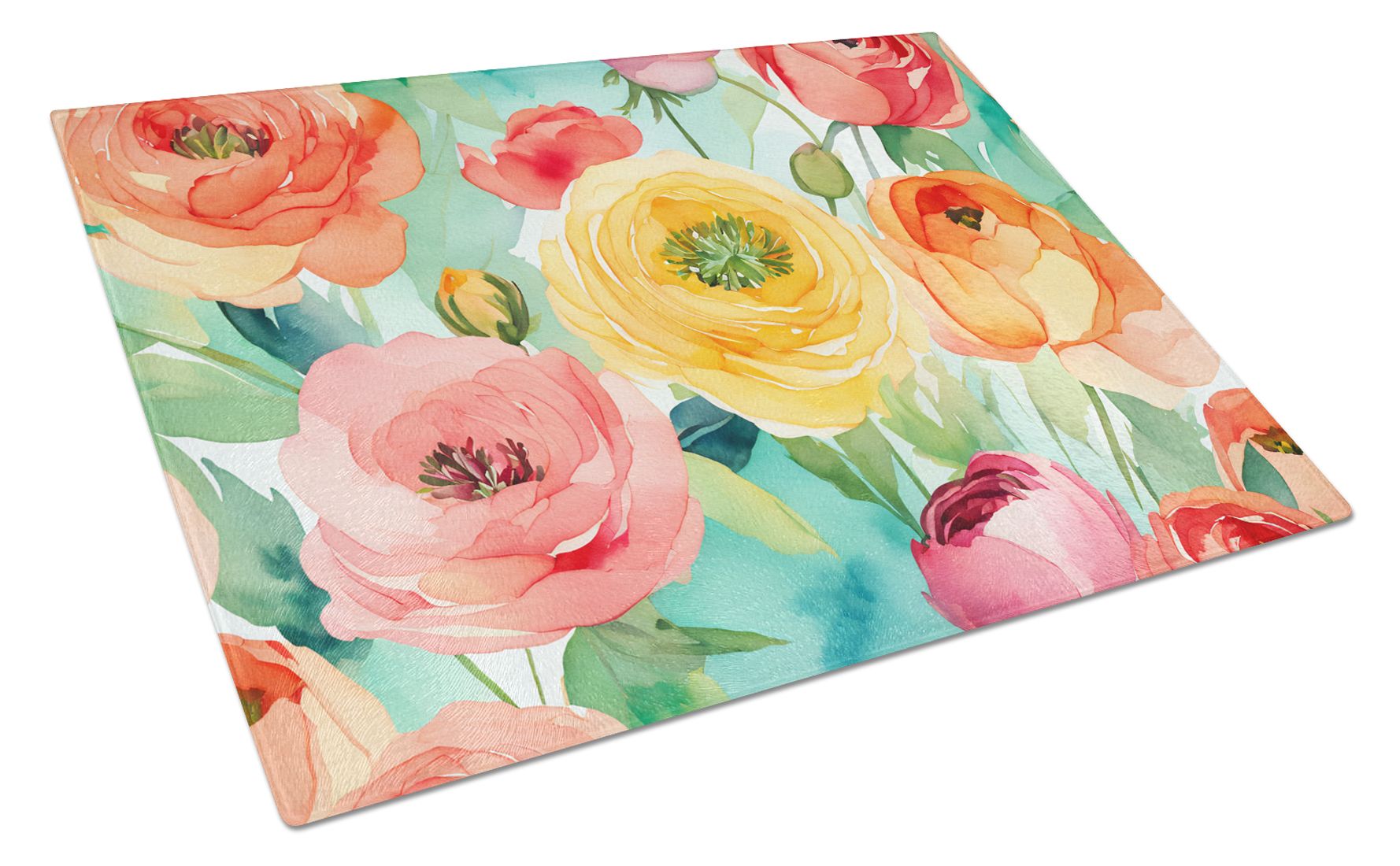 Home > NEW Ranunculus in Watercolor Glass Cutting Board Decorative Tempered Glass Kitchen Cutting and Serving Board Large Size Chopping Board