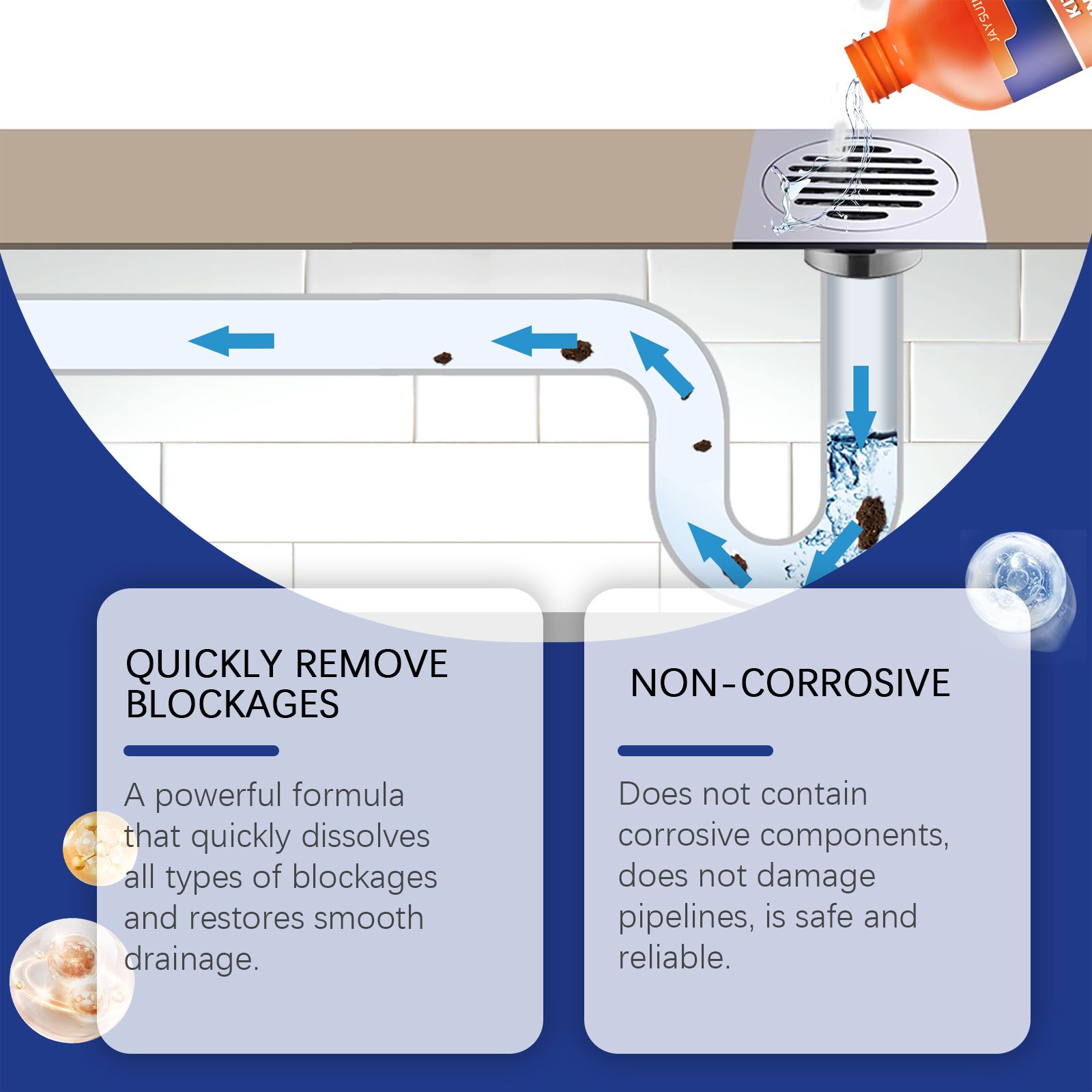 Our kitchen pipe cleaner contains disodium EDTA and sodium bicarbonate. It can quickly dissolve all types of blockages and restore unobstructed drainage. Its use method is very simple: pour the right amount of this product into the pipe, wait more than 2 hours, and then flush the pipe with a lot of hot water. And it can easily the blocked drainage pipe and the blockage in the pipe.