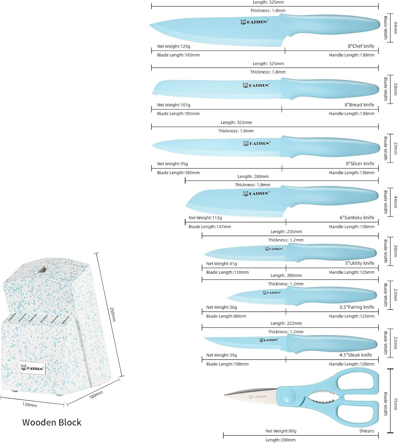14 Pieces Fancy Rainbow Titanium Coating Kitchen Knife Set, No Rust, and Super Sharp Cutlery Knife Set with Wooden Stand and Kitchen Scissors for Family and Restaurant