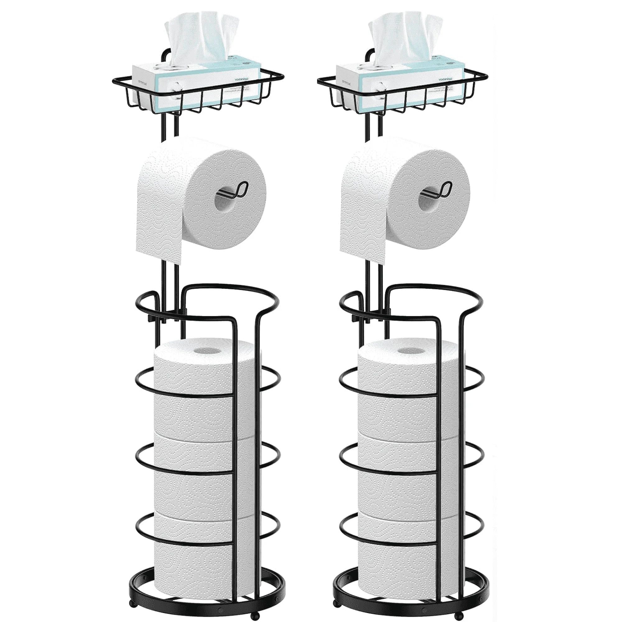 Home > 2 Pack Toilet Paper Holder, Free Standing Toilet Roll Holder No Drilling, Bathroom Toilet Paper Stand with ShelfOrganizers and Storage,Upgraded