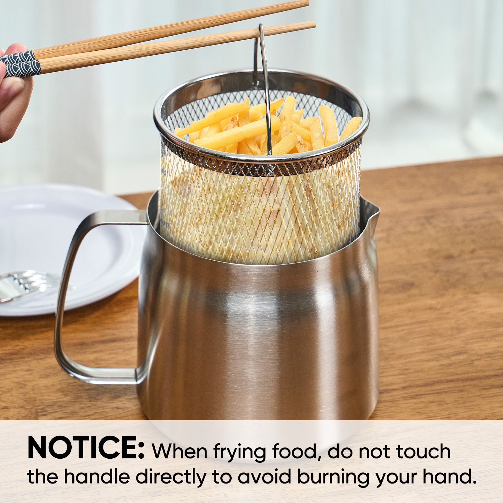 Transform into Fryer Pot - It can be turned into a mini deep fryer with basket and used for French fries, chicken wings, onion rings, tempura and more. Save 60% on oil usage, even solo diners can enjoy delicious fried foods. The frying basket facilitates quick removal of food, making draining effortless. Convenient for you to cook gourmet food.